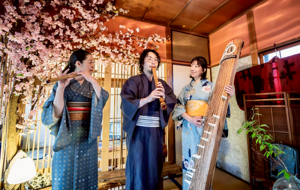 私たちは、箏、篠笛、尺八という3種類の和楽器で、オリジナル曲を中心に演奏活動をしています。